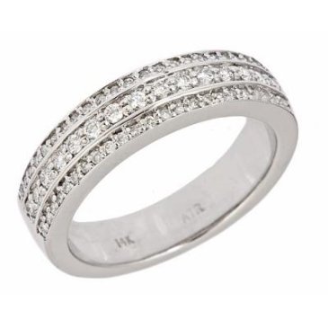 Gorgeous 3-row diamond wedding band features 61 brilliant cut diamonds in pave setting; totaling weigth is 0.44ct…. More >>